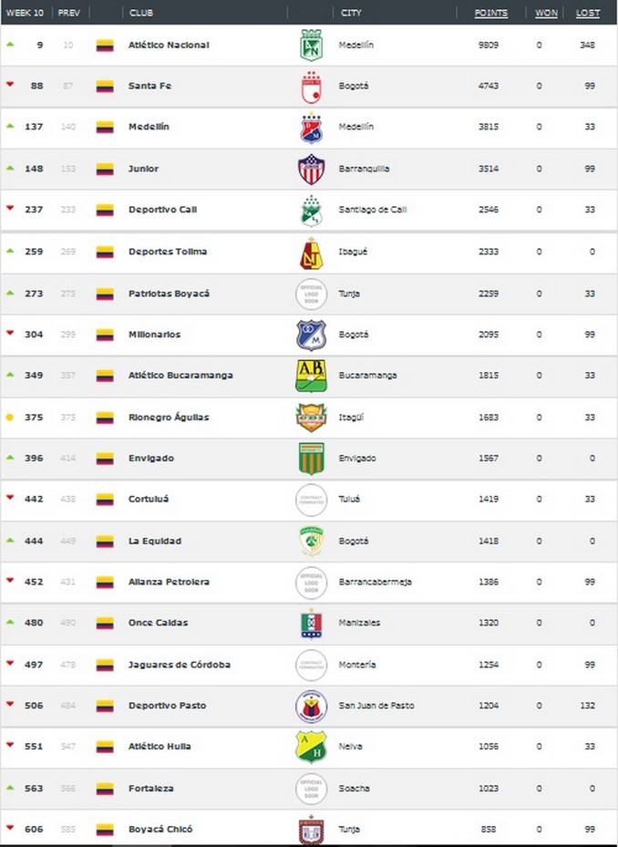 Ranking de equipos de Colombia