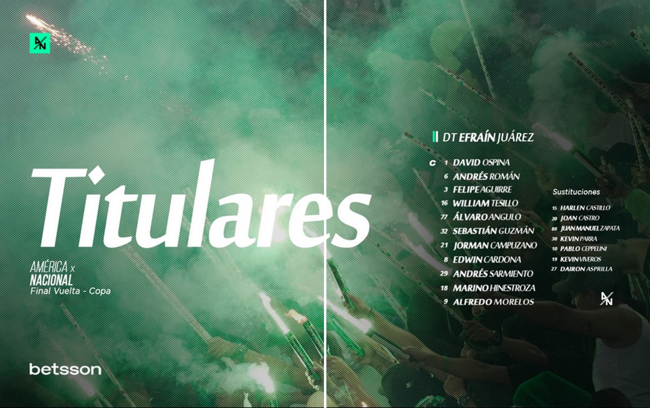 Resumen: Alineación confirmada: Nacional va por la Copa BetPlay. ¿Podrá mantener la ventaja ante América?