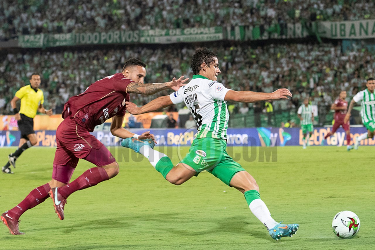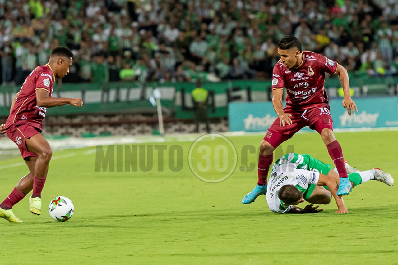 Sin embargo, el Tolima fue el que abrió el marcador al 22 cuando el creativo Daniel Cataño mandó un centro en un tiro de esquina que se paseó por el área y golpeó en el estómago de Plata, que estaba solo frente a la portería de un Kevin Mier que no pudo hacer nada para evitar la anotación.