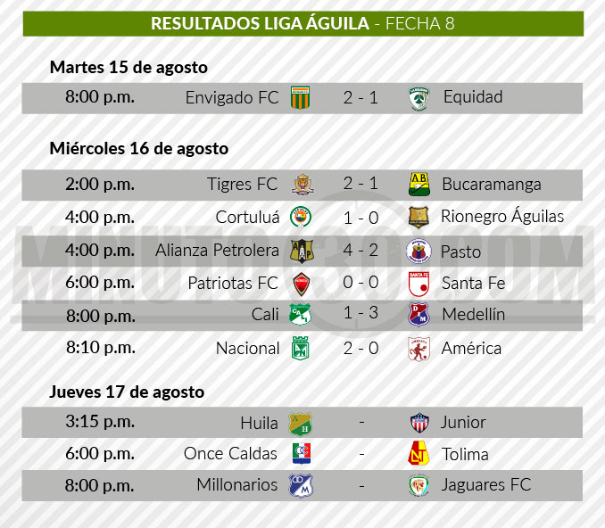 Resultados de lo que va corrido de la jornada