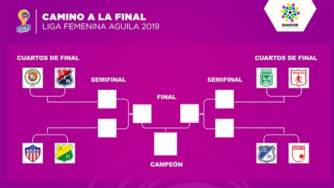 • Luego de que se conociera que Atlético Nacional e Independiente Medellín avanzaran a los cuartos de final de la Liga Águila femenina, la Dimayor sorteó cómo se jugará la competencia a partir de ahora, en la que solo quedan los equipos antioqueños y América de Cali, Santa Fe, Atlético Huila, Junior FC, Millonarios FC y Cortuluá.