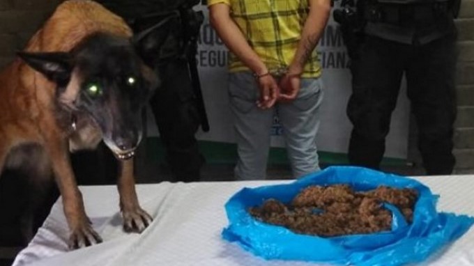 Según los detalles que entregaron las autoridades, la captura se dio gracias al audaz olfato de uno de sus “héroes peludos” canino, quien dejó en evidencia a un sujeto cuando llevaba 465 gramos de marihuana.