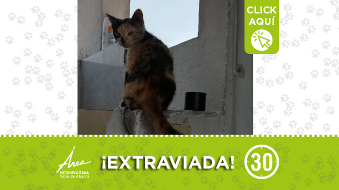 Esta gatica se perdió en el barrio la Almeria, es de tres colores, tiene aproximadamente 7 a 8 meses de edad y su es de peso 2.5 kilos.