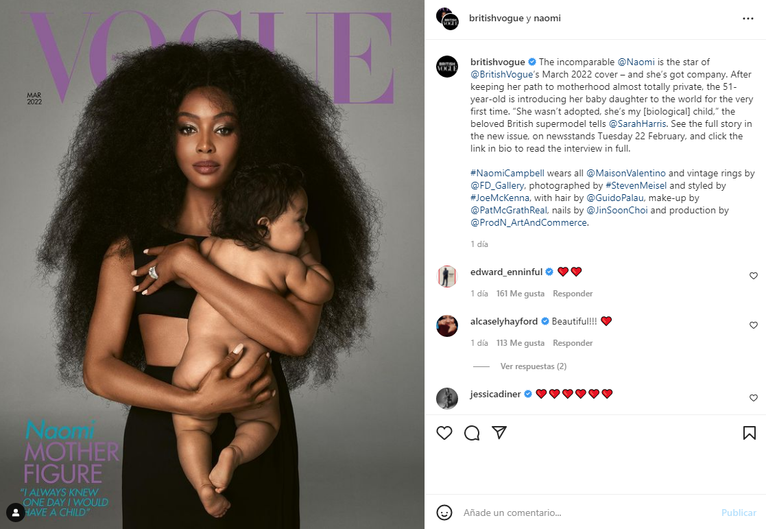 Naomi Campbell, de 51 años, posó por primera vez junto su hija de nueve meses para una reconocida revista.