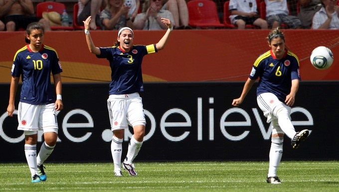 Las jugadoras colombianas Yoreli Rincon (izda), Natalia Gaitán (c) y Daniela Montoya