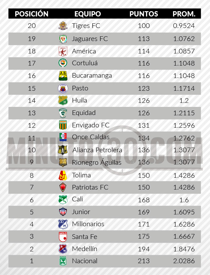 Con ese resultado, el cuadro vallecaucano logra mantenerse en el puesto 18 de la tabla, con 114 puntos y un promedio de 1.0857, superando por muy poco a su rival de turno en la jornada anterior.