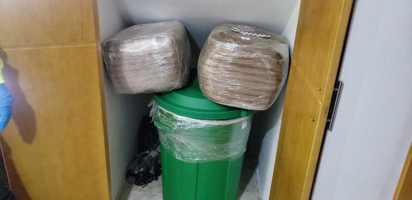 En este operativo fueron incautados 58 kilos con 530 gramos de marihuana prensada, 340 gramos de cocaína, tres revólveres, munición, dos grameras, 8 celulares, dos radios de comunicación, una prensa hidráulica, dos automóviles y $2’018.000 en efectivo.