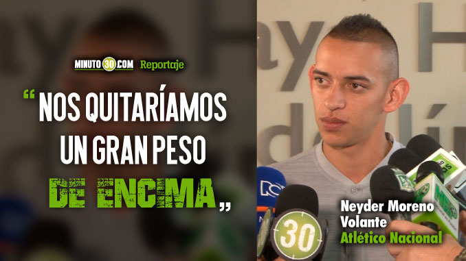 Minuto30.com- El volante Neyder Moreno confía en que Atlético Nacional terminará con la paternidad del Deportes Tolima en la Copa Águila.