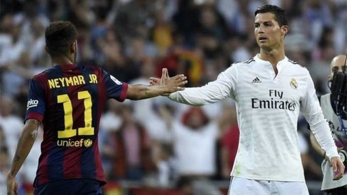 Neymar y Cristiano Ronaldo durante un clásico de España. Foto archivo EFE