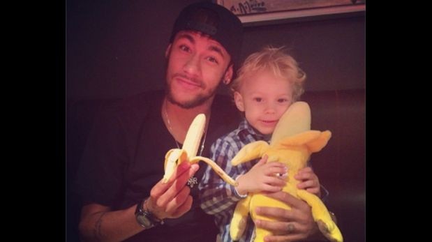 El brasileño Neymar Jr. ha aparecido en las redes sociales en una fotografía con su hijo en la que está con un banano en la mano, como muestra de repulsa por la acción ocurrida anoche en el campo del Villarreal, donde un aficionado lanzó al barcelonista Dani Alves una banana cuando éste se disponía a efectuar un saque de esquina.