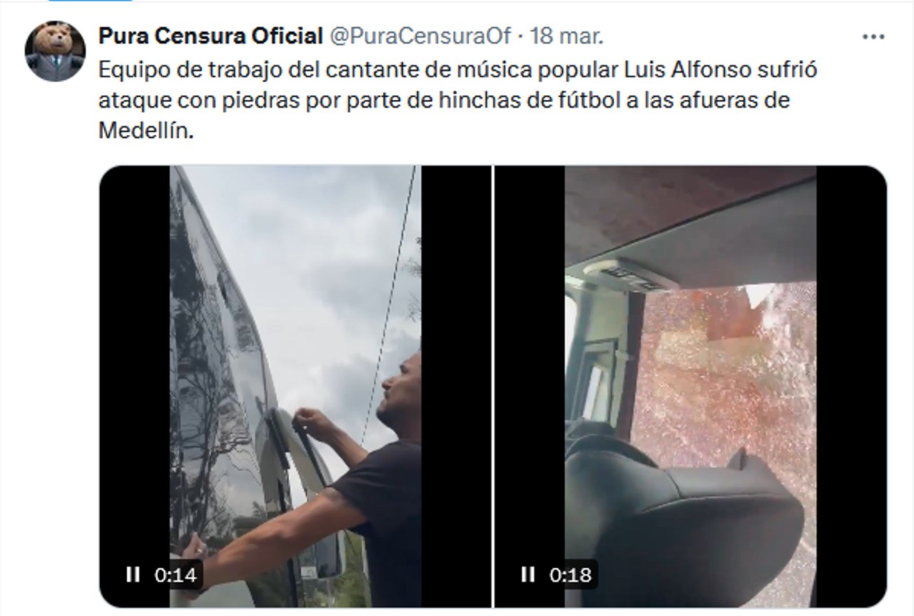 Minuto30.com .- En las últimas horas se conoció que el bus del artista Luis Alfonso fue alcanzado por las piedras de los hinchas de Millonarios.
