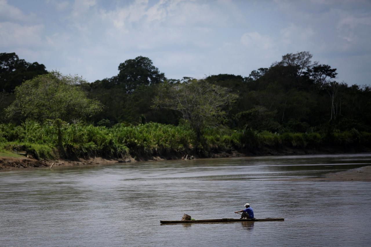 Un hombre navega en el río Tuira hoy, en el municipio de Pinogana, en la comunidad de El Real de Santa María, provincia de Darién (Panamá). EFE/Bienvenido Velasco