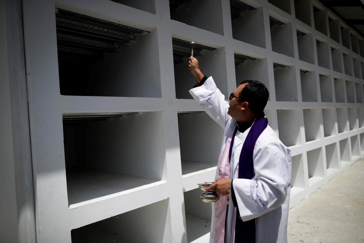 El complejo de nichos parece un islote blanco en medio del pequeño cementerio en esta comunidad a la que se accede principalmente por el río en bote.