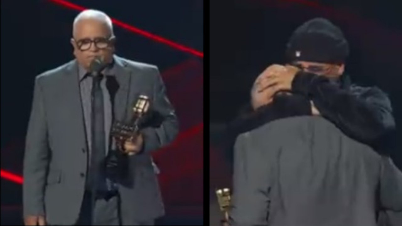 “Me cogieron de sorpresa con esto. Yo pensé que otro artista me iba a entregar este premio y no me esperaba que fuera mi papá”, dijo el artista luego de abrazar y besar a su padre.
