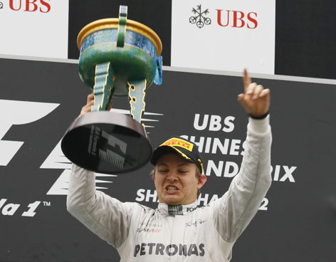 El alemán Nico Rosberg (Mercedes) logró su primer triunfo en una carrera de Fórmula Uno al ganar el Gran Premio de China, en el que Lewis Hamilton (McLaren), que fue tercero, le arrebató el liderato del Mundial a Fernando Alonso (Ferrari).