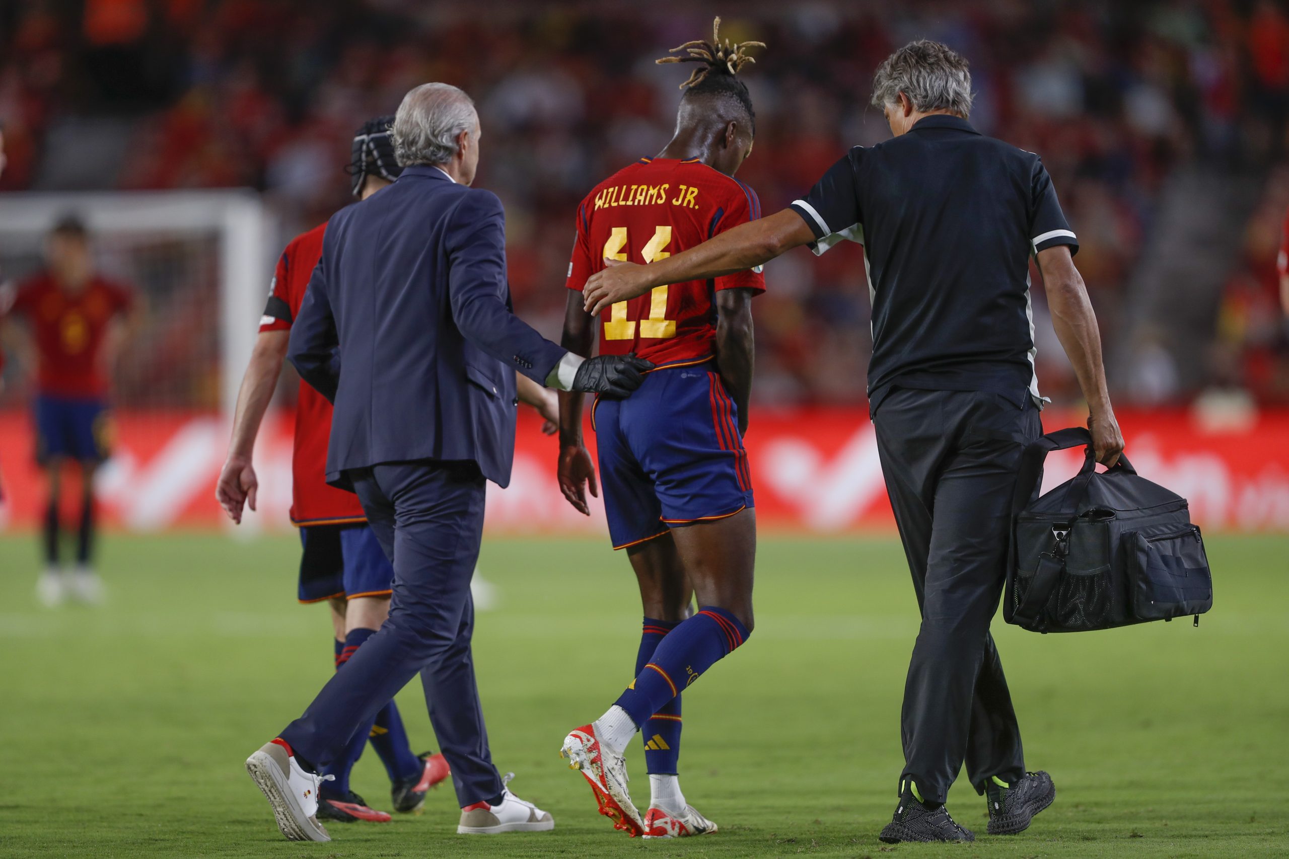 Bilbao, 14 sep (EFE).- El jugador del Athletic Club Nico Williams, lesionado en el partido del martes entre España y Chipre, sufre una lesión muscular "leve-moderada en el aductor mediano derecho" que "le impide entrenarse con el resto del equipo" y le hará perderse, al menos, el partido liguero del sábado en San Mamés frente al Cádiz.