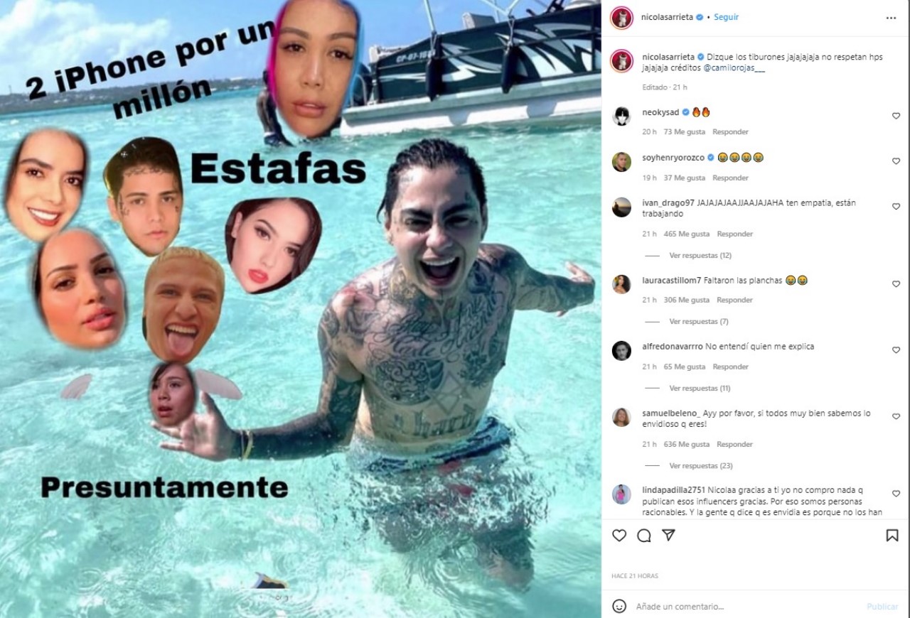 El creador de contenido Nicolás Arrieta compartió una imagen en su cuenta de Instagram, donde se puede observar el rostro de distintos influencers, la imagen sería un meme que hicieron y el influencer al parecer la compartió con sus suguidores.