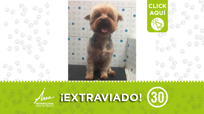 Este peludito se perdió en el Barrio Santa Ana, Municipio de Bello, está en tratamiento médico y no lo puede suspender.