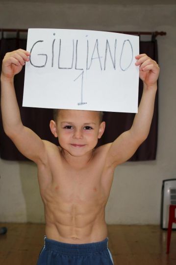 En otro caso parecido, el pequeño Giuliano Stroe ganó en 2009, una marca en el libro de Récords Guinness por su velocidad al avanzar 10 metros con las manos, mientras sostenía una pesa entre las piernas.