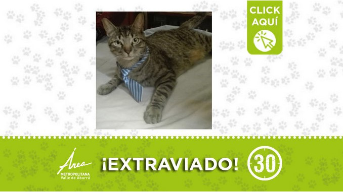 Este gatico responde al nombre de “Niño” y se extravió en el barrio Guayabal de Medellín. Si usted lo ha visto se puede comunicar al: 3016394778 ¡Difunde!