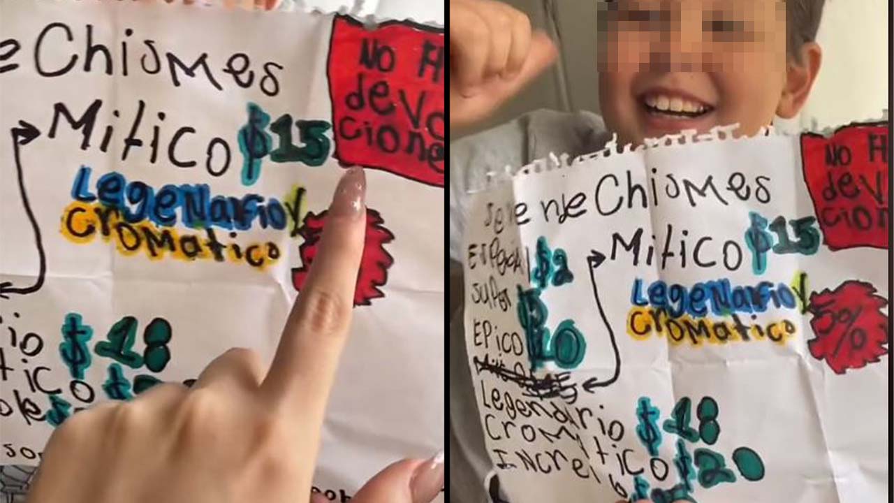 Hasta el momento de la publicación del video, el pequeño reveló que ya había vendido cuatro chismes de categorías “super” por lo que ganó 20 pesos mexicanos.