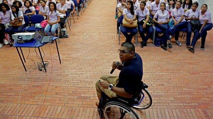 El deportista, dos veces ganador del medio maratón de Miami y otras dos del de Madrid en la categoría de sillas atléticas, contó su historia de vida, que a palabras de Mabel Iriarte, una de las jóvenes madres que asistió al evento, “lo convierten en un ejemplo de vida para luchar y salir adelante”.