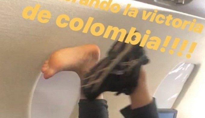 Después se dejó ver junto a sus hijos, a los que ya a ataviado con camisetas y banderas colombinas, y sus padres celebrando y enviando arengas al país.