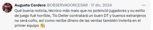 Otro por ejemplo, indica que “Fue un técnico mediocre, que no supo tomar decisiones acertadas en los momentos más importantes”.