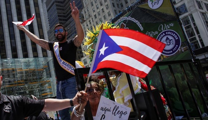 Miles de banderas de Puerto Rico pintaron este domingo de rojo, azul y blanco la Quinta Avenida de Nueva York, donde retumbaron los ritmos de bomba y plena autóctonos de esa isla, en la celebración del tradicional desfile de esta comunidad, que tuvo como mariscal a Ricky Martin.