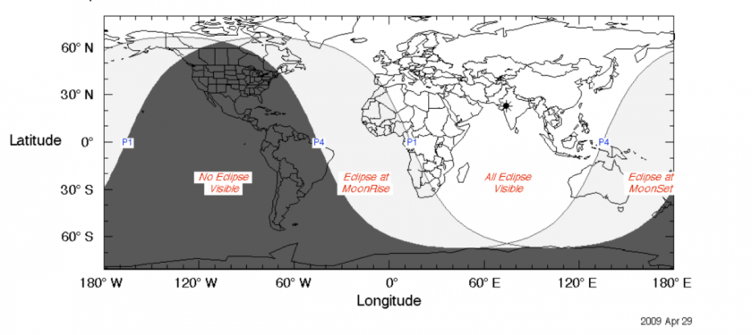 En las áreas oscuras no se verá el eclipse de este 10 de enero