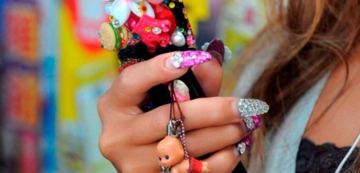 Una joven usa su teléfono móvil, completamente cubierto con pegatinas y otros tipos de ornamentos, en una estación de Osaka (Japón). EFE/Archivo