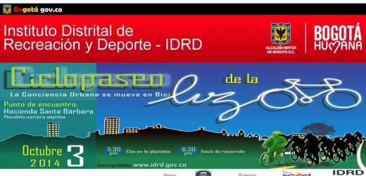 Este viernes 3 de octubre de 2014 desde las 5:30 pm junto al Centro Comercial Hacienda Santa Barbara (Carrera 7 # 115 – 72) se llevará a cabo el “Ciclopaseo de la Luz“, para iluminar la ciudad de buena energía y conciencia ambiental.