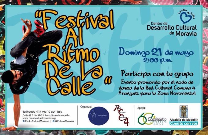 El evento, promovido por el Nodo de Danza de la Red Cultural Comuna 4 Aranjuez, dará inicio desde las 2 de la tarde y espera contar con la participación de todas las agrupaciones en los géneros Urbano, Popular-Bailes de salón, Folclor y Oriental.