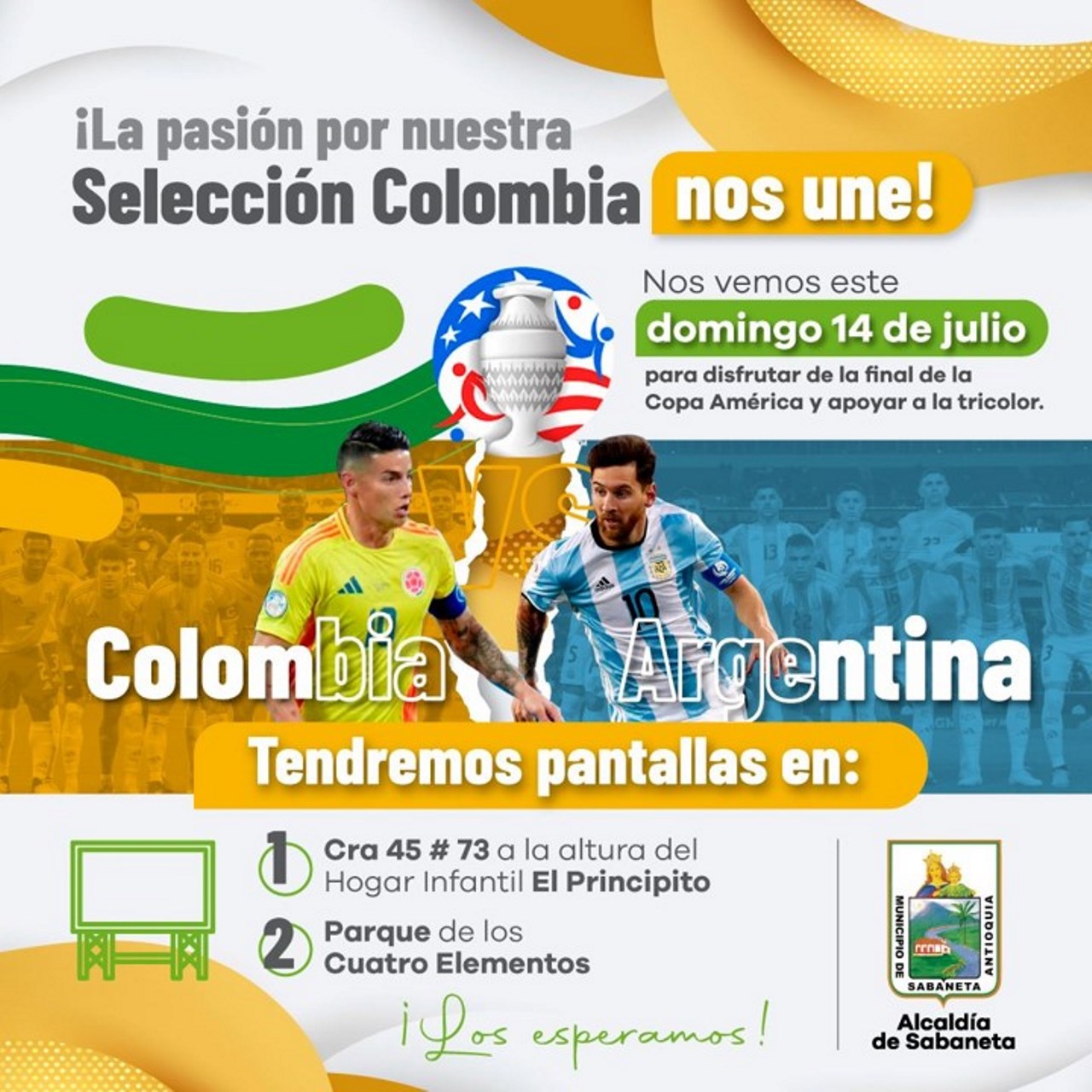 Resumen: ¡No te pierdas la Final de la Copa América en Sabaneta! Dos pantallas gigantes te esperan en el Hogar Infantil El Principito y en el Parque Cuatro Elementos. ¡Ven y vive la emoción!