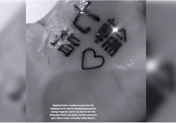 Ariana Grande intentó sin éxito corregir un tatuaje en japonés que se hizo en la palma de su mano izquierda que, en vez de decir “7 anillos”, en referencia a uno de los temas de su nuevo disco, se refería a un estilo nipón de parrillada.