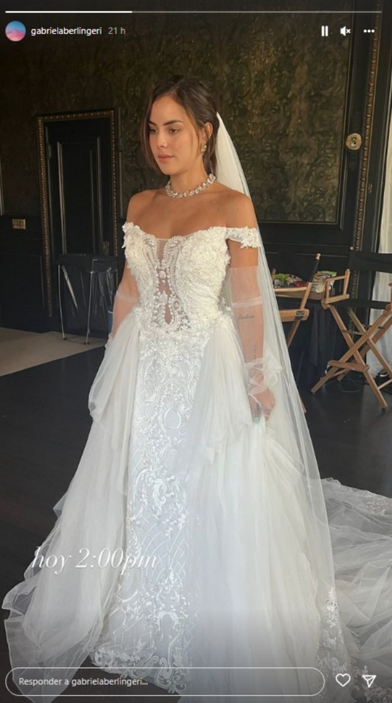 Con un traje color café y camisa blanca se ve al arista parado en el altar mientras que Gabriela Berlingeri baja del cielo como si de un ángel para unirse al cantante. Al parecer, el cantante quería hacer creer a sus fans que fue una boda pero dicen que fue ficticia.