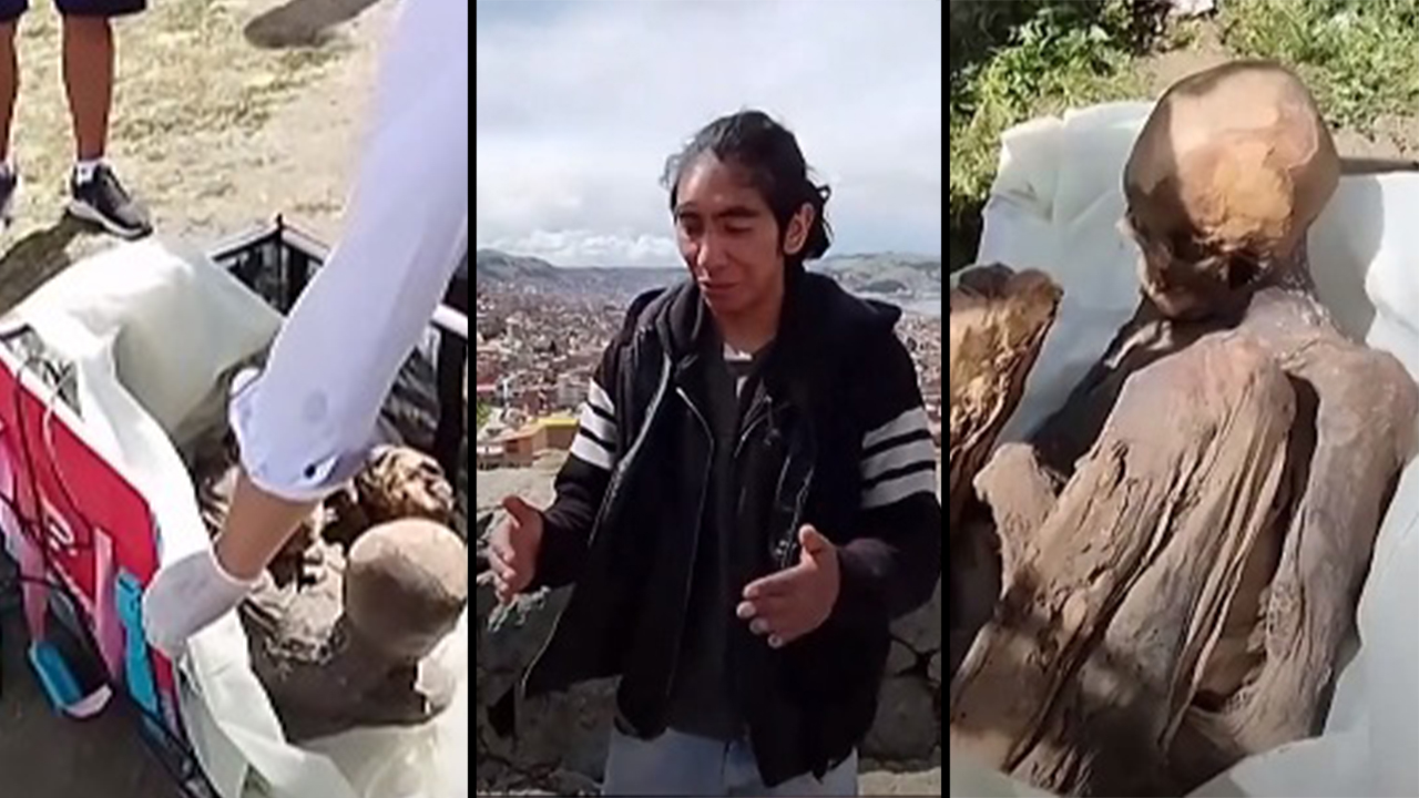 El sábado pasado en un mirador de Punu, Perú, durante un patrullaje habitual, autoridades encontraron a un joven repartidor que llevaba en su maleta de domicilios una momia que se estima tiene entre 600 y 800 años de antigüedad.