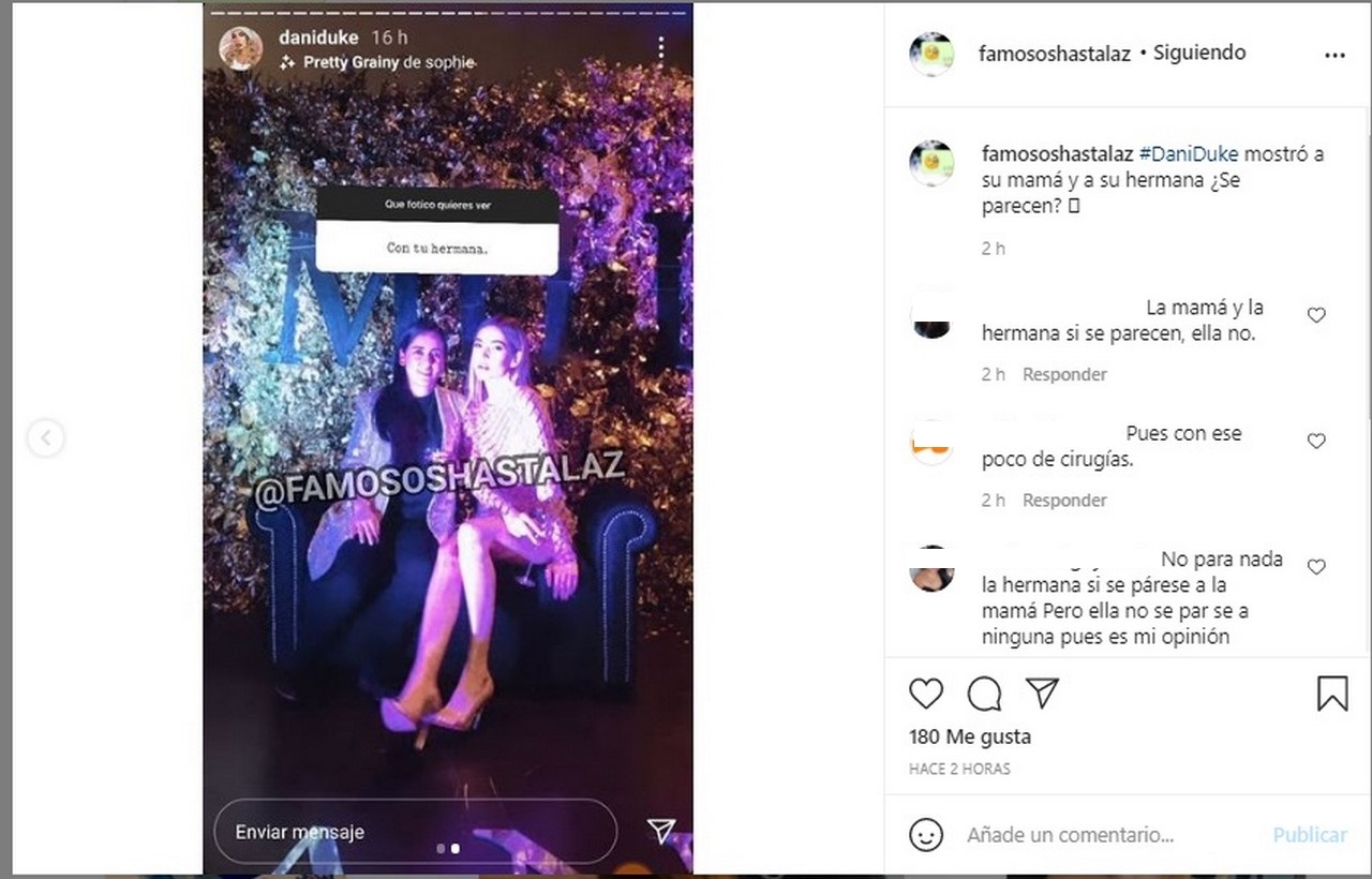Dani Duke publicó dos fotografías en la que salía con su mamá y su hermana, una cuenta de Instagram recopiló las imágenes, por lo que dicen que Dani no tiene parecido con ellas, al parecer por las cirugías que se ha realizado.