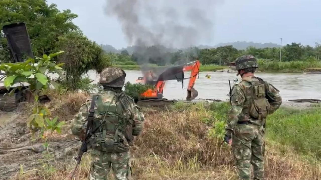 En lo corrido del 2024 ya son 11 las unidades de producción minera intervenidas. Allí las Fuerzas Militares, junto a la Policía y la Fiscalía han inutilizado ocho dragas, 10 retroexcavadoras, cuatro dragones y 37 motores empleados para la extracción de oro.