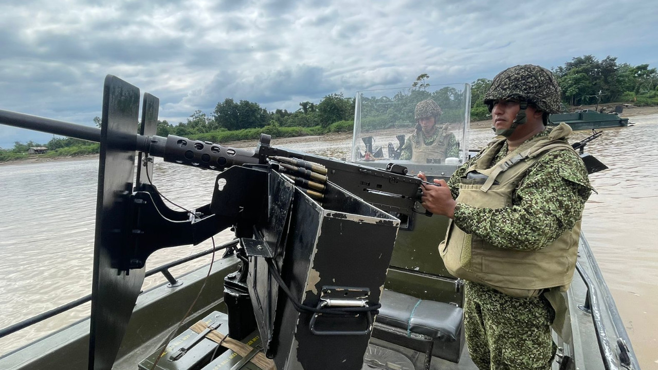 Por río, las Fuerzas Militares desplegaron embarcaciones artilladas del Ejército Nacional y la Armada de Colombia para realizar patrullajes diurnos y nocturnos. Debido a la alta velocidad que manejan, incluso son empleadas para interceptar lanchas en las que puedan movilizar químicos, repuestos y la misma maquinaria.
