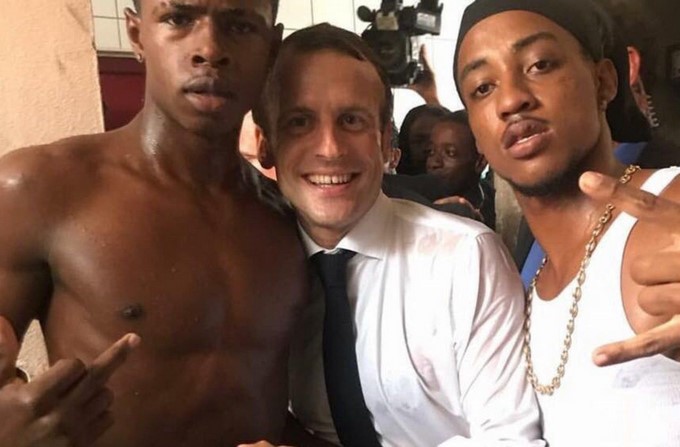 El presidente de Francia, Emmanuel Macron, se ha visto envuelto en una nueva polémica al haberse fotografiado durante su visita a las antillas francesas con un joven que acababa de salir de prisión y otro que hacía un gesto ofensivo con el dedo.