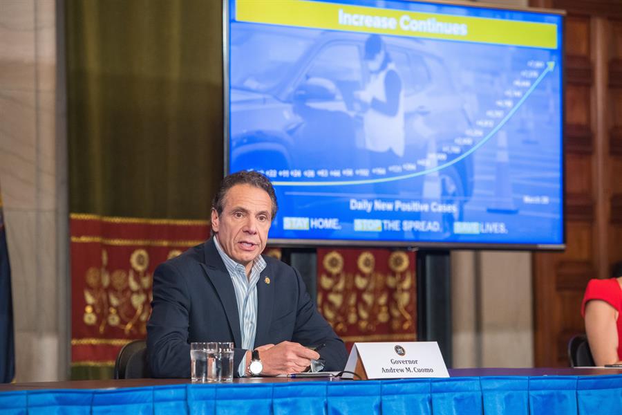 Cuomo, por otra parte, anunció que ha decidido prorrogar al menos hasta el 15 de abril la orden que únicamente permite a trabajadores de sectores considerados esenciales acudir a sus puestos y dijo que la norma se revisará cada dos semanas.