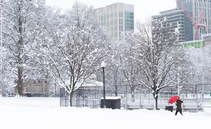 La fuerte nevada ha tumbado postes de electricidad en algunas localidades, lo que ha dejado sin electricidad a miles de personas, y las escuelas públicas de decenas de distritos decretaron el cierre este lunes.