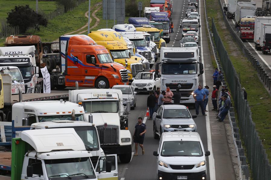 Cientos de camiones llevan desde el jueves ocupando importantes vías de todo el país, como la ruta 5 o la ruta 68, que une Santiago con la costa, y los manifestantes están incumpliendo restricciones impuestas por la pandemia del coronavirus, como el toque de queda o las concentraciones de personas.