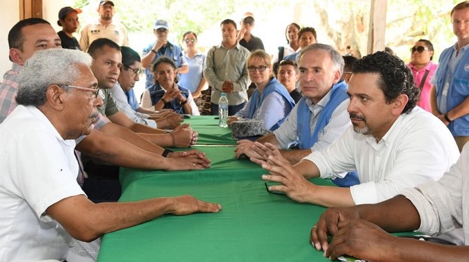 En sus primeros recorridos por los Espacios Territoriales de Capacitación y Reincorporación (ETCR) de Colinas, en Guaviare (sur); Llano Grande, en Antioquia (noroeste), y Pondores en La Guajira (norte), Ceballos estuvo acompañado del jefe de la Misión de Verificación de las Naciones Unidas, Jean Arnault.