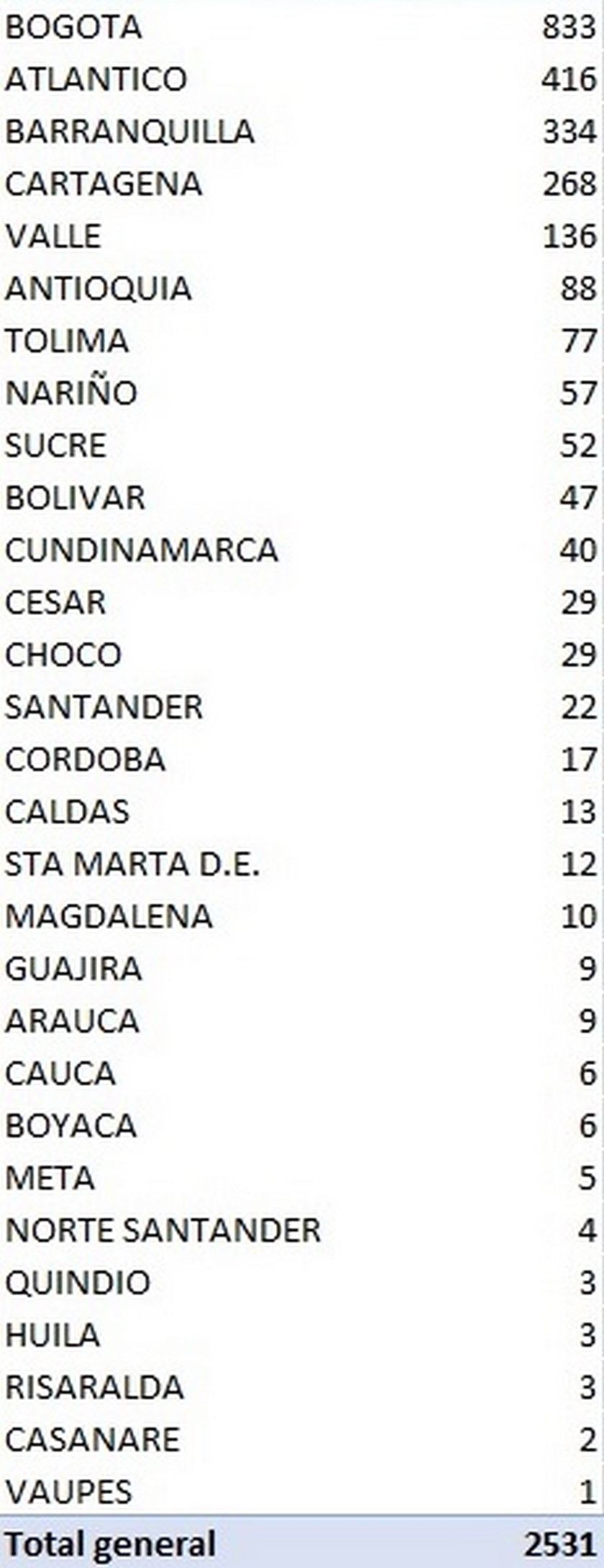2.531 nuevos casos