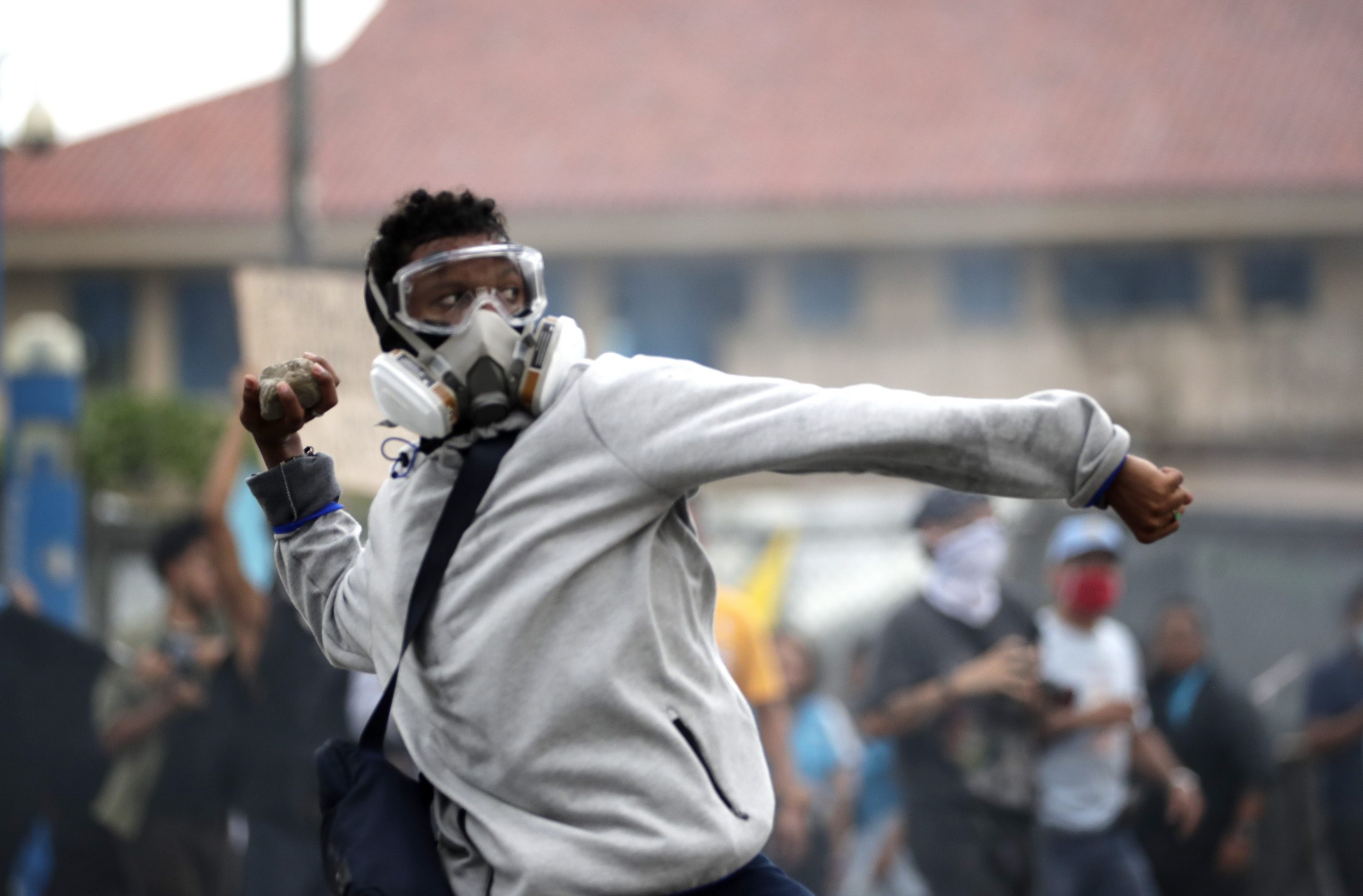 La Policía de Panamá tiró gas pimienta a los manifestantes, la mayoría estudiantes, que respondieron con piedras y bolas de pintura, según pudo constatar EFE.
