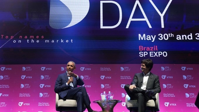 Barack Obama, durante su intervención en un encuentro sobre innovación digital en Latinoamérica organizado por la compañía Vtex, en Sao Paulo (Brasil). EFE