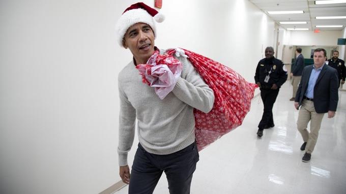El expresidente de EE.UU. Barack Obama (2009-2017) entregó hoy regalos de Navidad a niños enfermos de un hospital de Washington, a los que visitó vestido con un gorro de Papa Noel y cargado con un saco lleno de paquetes.