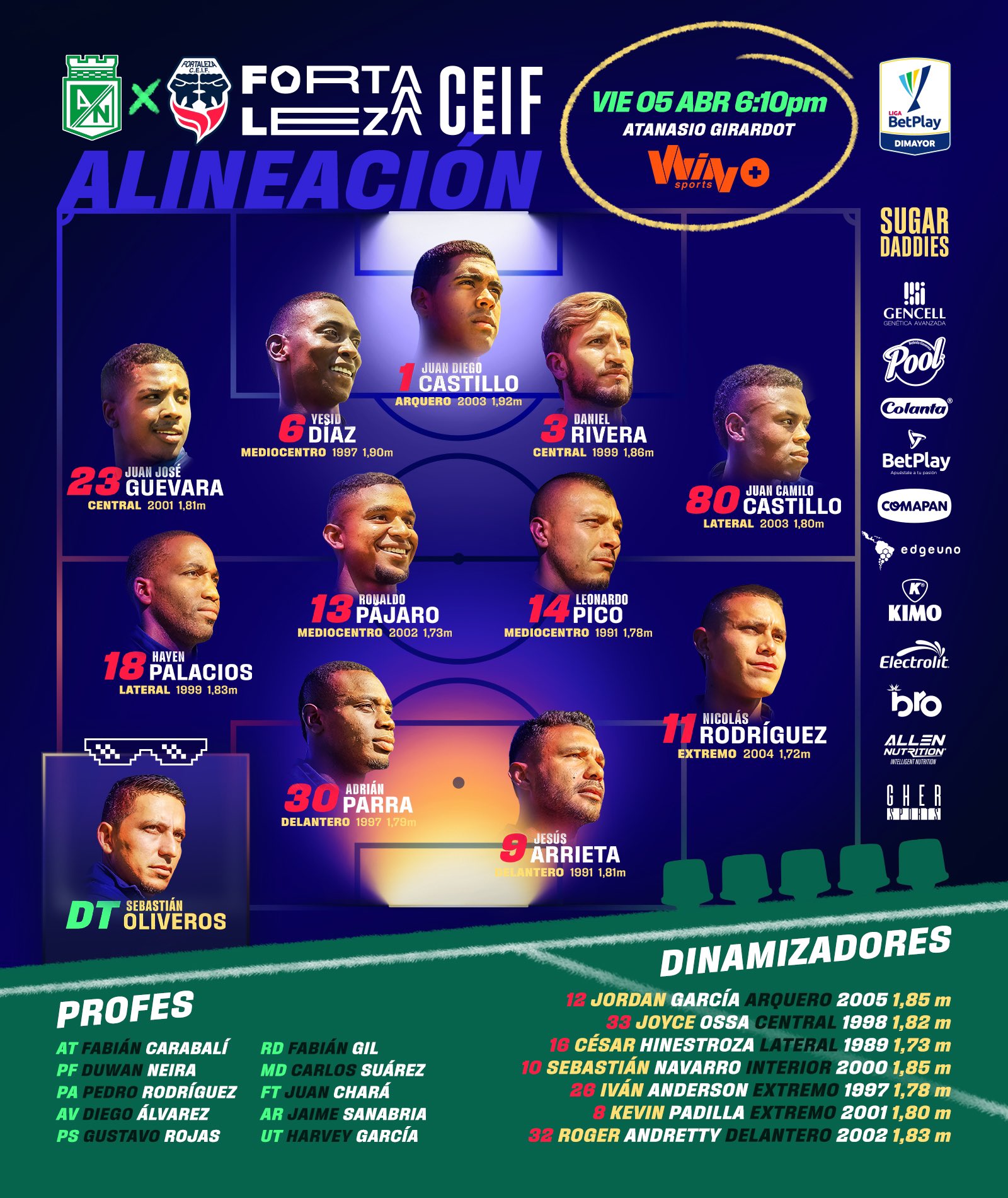 Titulares de Fortaleza para enfrentar a Atlético Nacional.